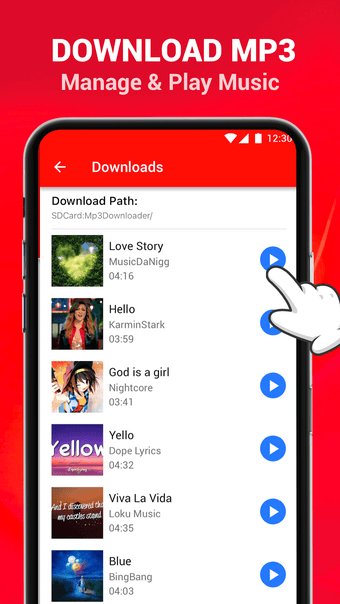 Mp3 Downloader Download Musicis een gratis programma voor Android, behorend tot de categorie 'Muziek & Radio' .